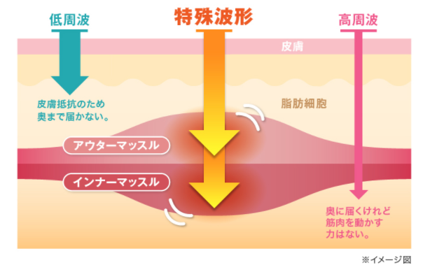 大手エステサロン・大手総合病院・プロ野球球団・Jリーグ球団採用のMキューブ&PDMウェーブマシンという特別な波形を使用します。